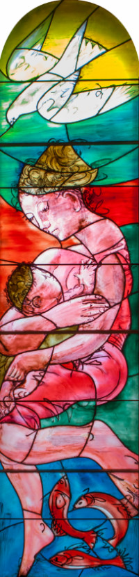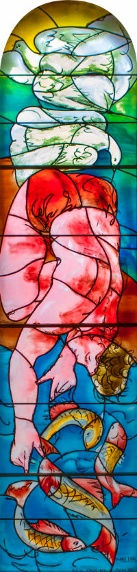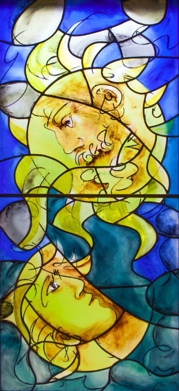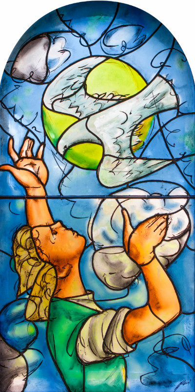 Réalisés en quatre étapes sur trois ans, les vitraux possèdent une unité étonnante et créent une atmosphère particulière. Inspiré par le lieu, l’artiste a organisé cet ensemble en vue du but principal : créer un espace de recueillement et de paix.
